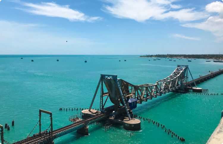 The Pamban channel lies between the mainland India and Rameswaram Island, over which a 2.3 km long Pamban Bridge is constructed.